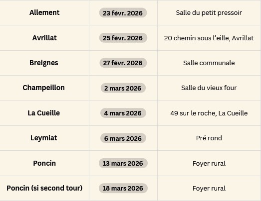 Agenda & Evènements Dates de réunions publiques Poncinoises, Poncinois.Votre avis compte : rencontrons-nous lors de nos réunions publiques pour parler de notre commune : Rendez-vous à 20h